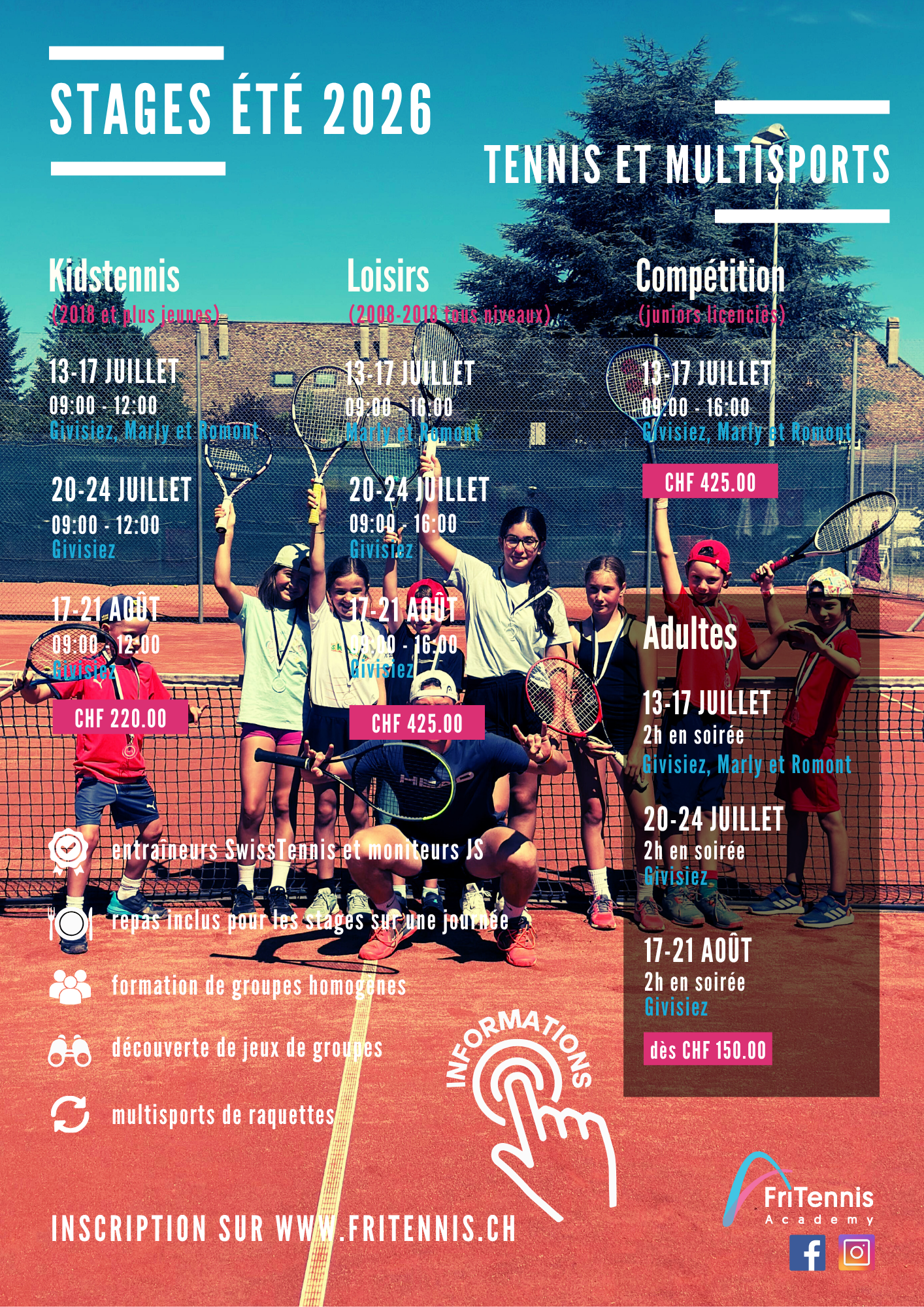 En mars 2022, le Centre de Performance Fribourgeois de Tennis a vu le jour. En accord avec les clubs de tennis fribourgeois, la FriTennis Academy a pris la direction du Centre et a lancé dès septembre le nouveau programme d’entraînements de nos jeunes talents fribourgeois.